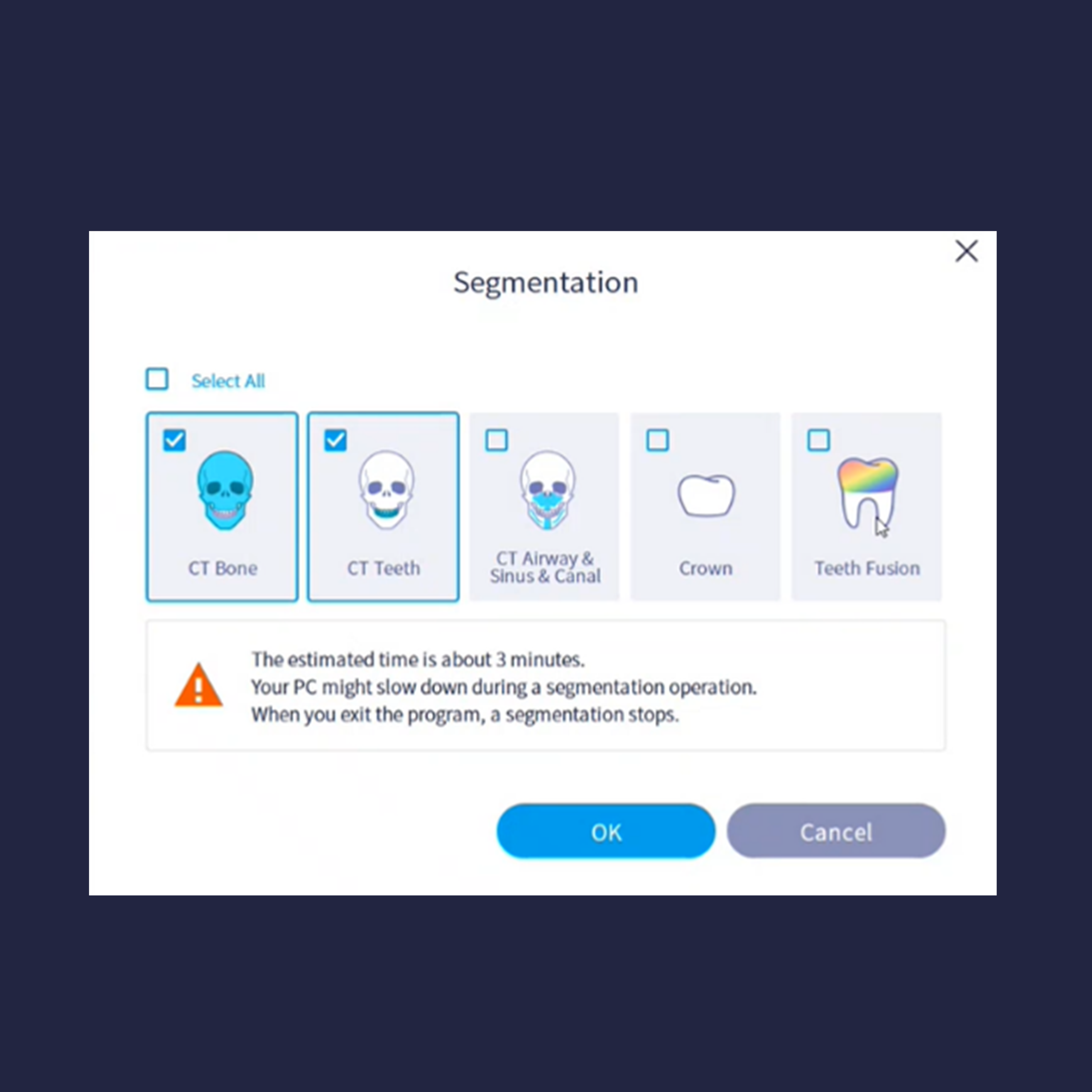 RAYFusion utilizes powerful AI algorithms to precisely segment CBCT (DICOM) data into anatomical structures and convert them into STL-format 3D models. The converted CT data (bone) is integrated with IOS data (tooth crown) to reconstruct a comprehensive anatomical structure. This integrated data can be flexibly used for various diagnoses and treatment planning. The RayFace software supports the entire digital treatment workflow from scanning to CAD/CAM.